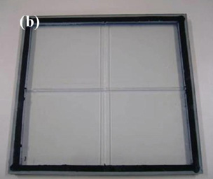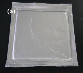 超断熱材料を構成する三種の要素材料を開発した(図2)。(a)はナノ多孔質シリカ粒子であり、(b)はナノ多孔質シリカ透明体、(c)はナノ構造制御コーティング膜である。10Paの真空圧力において、ナノ多孔質シリカ粒子は約0.003W/mKという低熱伝導率であり、一般的な断熱材の熱伝導率0.03W/mKと比較して10倍以上の断熱効果を有している。これらの要素材料と、ポリマーシート、ガラス板を複合(真空封入)させて、超断熱壁および窓材料のサンプルを作製した(図3)。