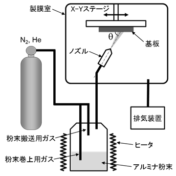 積層コーティング膜は高温において優れた構造安定性が求められます。この膜が多孔質であると、高温において焼結収縮するため膜中に引張応力が発生し、その結果として、膜が破壊し保護膜としての機能が消失することが懸念されます。言い換えれば、この膜には、成膜段階で既に緻密質であることが求められます。我々は、この問題を解決することが期待される成膜法の一つとして、エアロゾルデポジション(AD)法に着目しました。