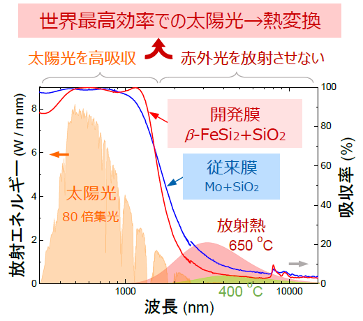 太陽エネルギーから高温熱源を創る薄膜材料において世界最高効率を実現