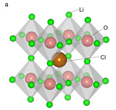 一般式ABO3と書かれるペロブスカイト酸化物(A、Bは陽イオン)は、機能性材料として古くから様々な用途で使われています。その代表例としては、強誘電体としてパソコンなどの電子機器に用いられるチタン酸バリウム(BaTiO3)が挙げられます。最近では、酸化物の枠組みを越えたCH3NH3PbI3のような有機無機ハイブリッドのペロブスカイト化合物が発見され、太陽電池への応用研究が進んでいます。一方、ペロブスカイト構造の構成元素の陽イオンと陰イオンの役割を入れ替えた化合物は、逆ペロブスカイト(またはアンチペロブスカイト)と呼ばれ、比較的新しい化合物として注目を集めています。(以下、ペロブスカイトと逆ペロブスカイトをまとめて(逆)ペロブスカイトと表記)一般式はM3BAと書かれ、Mが陽イオン、A、Bは陰イオンです。例えば、Li3OClは、単純な組成と構造を持つという利点に加えて、リチウムイオン(Li+)が構成元素の6割を占めることから、全固体電池の固体電解質として期待されています(図1a)。一般に、リチウムイオンの高速伝導を達成するためには、リチウムイオンと陰イオンの間のクーロン引力を抑えることが重要であることが知られていますが、Li3OClでは、酸化物イオン(O2–)や塩化物イオン(Cl–)の分極率が小さい(あるいは電気陰性度が大きい)ため、リチウムイオンとの強いクーロン相互作用をもってしまうのが問題点でした。