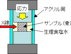 | 圧縮試験治具 (応力負荷方向とX線入射方向) |