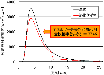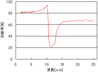 | ? 室温にて分光反射率を測定 ? 分光放射率を放射率 = 1 - 反射率の関係から求める ? 任意温度での全放射率を黒体との全放射エネルギーの比より算出する |