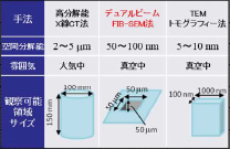 ○TEM観察試料作製 ・積層膜、半導体デバイス ・大気非暴露加工、冷却加工 ・特定部位の抽出 (マイクロサンプリング法) |