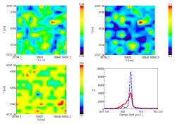 | ラマン分光法: 分子・格子振動を測定 ? 化学結合状態の決定 ? 結晶多形の決定 ? ひずみの検出 ? 温度依存性の評価 ? ラマン信号と発光の対応 |