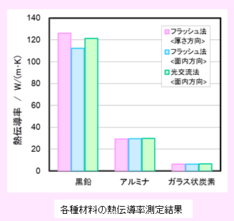 熱伝導率は、上記の熱拡散率と、かさ密度およびDSC法で測定した比熱容量から算出