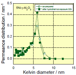 | 測定例 水蒸気暴露後のNi添加γアルミナの細孔径変化 | 測定例 シリカ膜のガス分離特性 |