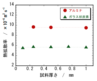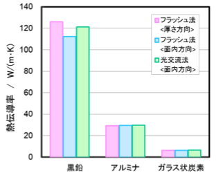 熱伝導率は、上記の熱拡散率と、かさ密度およびDSC法で測定した比熱容量から算出