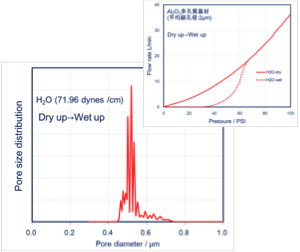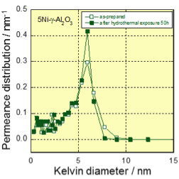 | 測定例 水蒸気暴露後のNi添加 γアルミナ膜の細孔径変化 | 測定例 アルミナ多孔質基材の細孔径 |