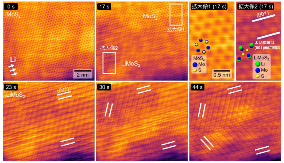 MoS2へのLi挿入反応のその場STEM観察