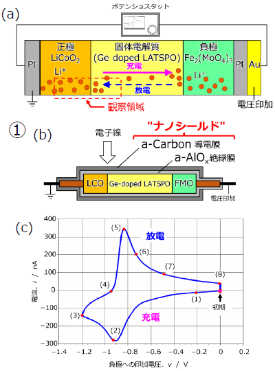 ①ナノシールド技術により、電池内部の電位変化を定量的に観察する事に成功