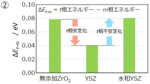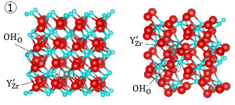 ①t相、m相のY2O3添加ZrO2における溶解プロトンの安定な配置を初めて決定