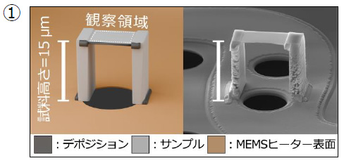 ・高さ15 μmのΠ字形の形状を有するTEM試料をMEMSチップ上に構築