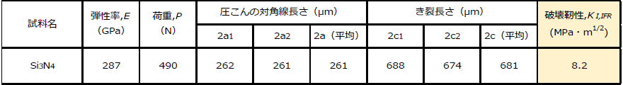 圧子圧入(IF)法による窒化ケイ素材の破壊靭性評価