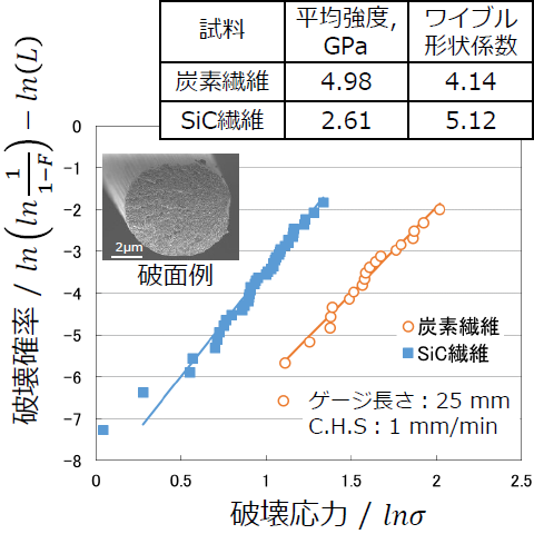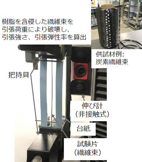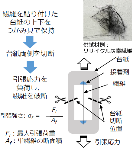 ハンドリングによるダメージを極力抑えて直径10 μm程度の繊維1本または繊維束の状態で引張試験を実施可能