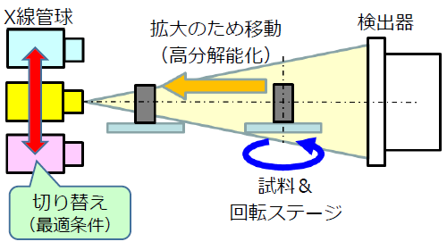 【直交型(一般的)】JFCCでは3種類のX線管球を選択可能